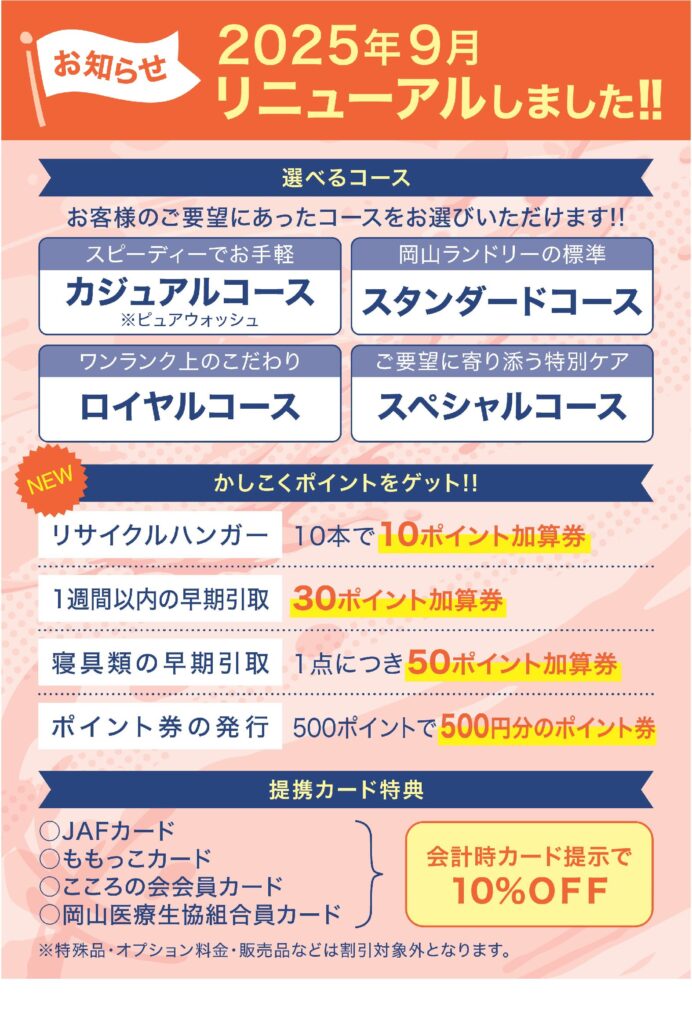 いつも岡山ランドリーをご愛顧いただきまして誠にありがとうございます。