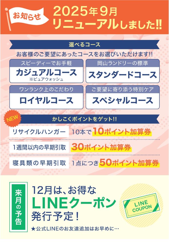 いつも岡山ランドリーをご愛顧いただきまして誠にありがとうございます。