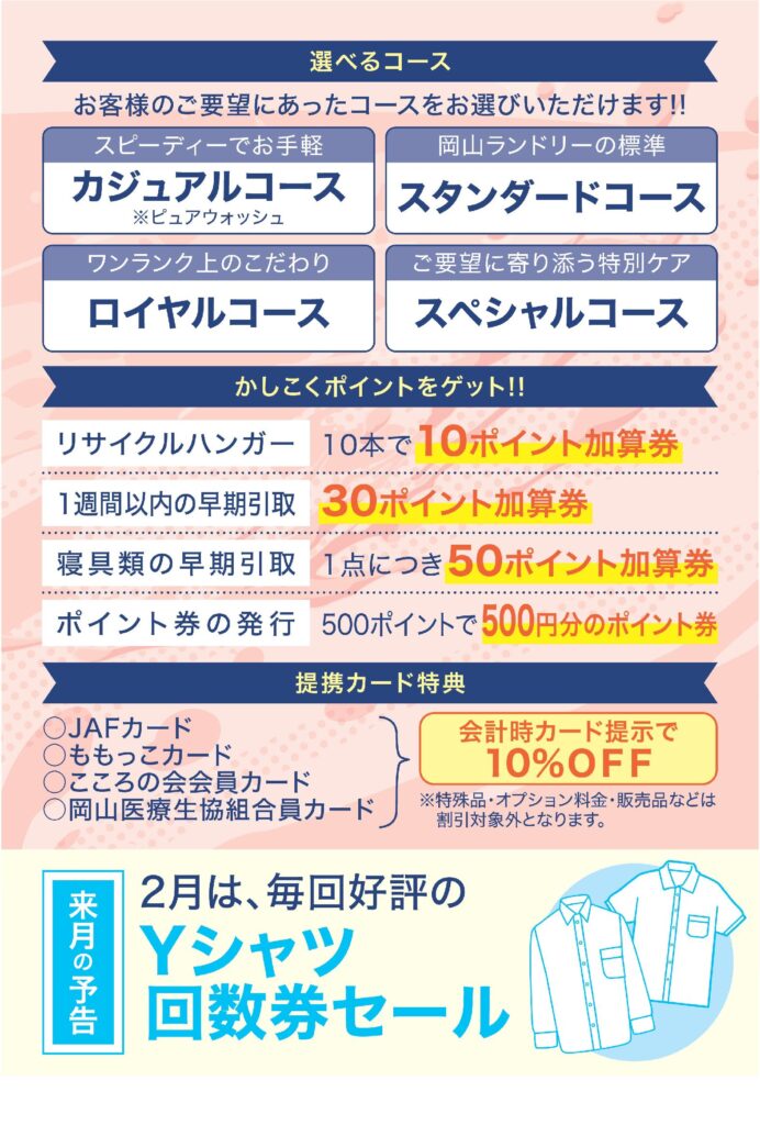 << 2026年2月のキャンペーン予告 >>毎回好評の、アレです!察しの良いランドリーファンなら、もうお分かりですよね?詳細はチラシの下を見てくださいね!!!